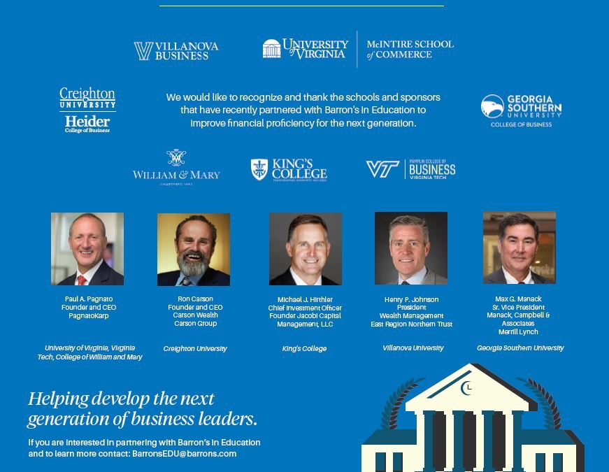 Friday, September 21, 2018: Jacobi is pleased to announce a partnership with Barron’s in Education. This program aims to vastly improve financial literacy and proficiency, making it possible for all students and faculty at participating schools to receive a digital subscription to Barron’s at no cost. Through the program, Jacobi Capital has sponsored King’s College and Wilkes University, both in Wilkes Barre, PA, and provided the schools with a weekly review that highlights the top events and articles that professors can address in the classroom. Students can also take advantage of the MarketWatch Virtual Stock Exchange interactive game at no cost. Jacobi Capital is proud to encourage financial literacy among the next generation within our community.